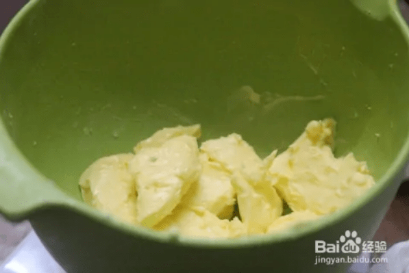 把黃油切碎,在室溫下讓它變軟,直到手指能輕易地戳出一個(gè)洞。