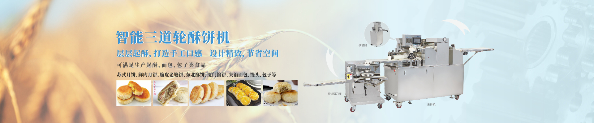 蘇式月餅、鮮肉月餅、云南火腿月餅、東北酥餅、廈門餡餅、金華酥餅、金絲肉松餅、酥皮老婆餅、餡中餡酥餅、餡中餡流芯酥餅、面包銀絲卷、面包銀絲卷酥餅(紅豆/綠豆/五仁/椒鹽/白糖/黃金等多種餡料)、綠豆/紅豆/奶油等夾餡面、包圓/方饅頭豆沙包水煎包菜/肉包等